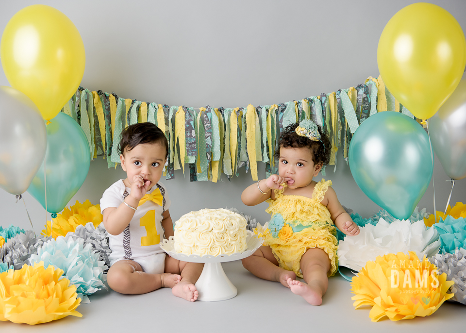 For this cake smash session, we used a combination of yellow, grey and mint. Love it!